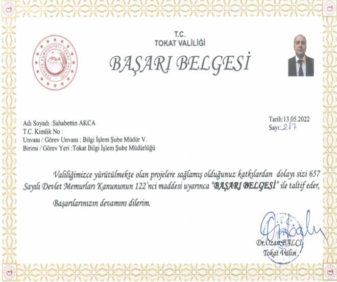 \r\n\tValili\u00f0imizce yürütülmekte projelere istinaden ald\u00fd\u00f0\u00fdm\u00fdz tevdi edilen ba\u00fear\u00fd belgesi.<\/p>\r\n