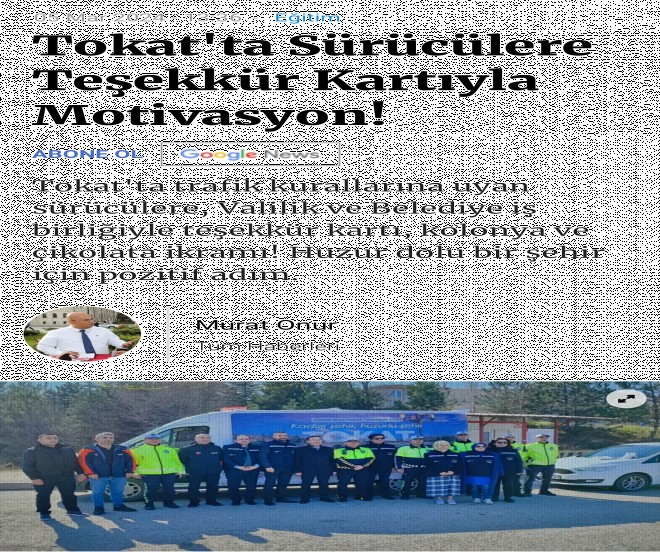 \r\n\tTokat'ta trafik kurallar\u00fdna uyan sürücülere, Valilik ve Belediye i\u00fe birli\u00f0iyle te\u00feekkür kart\u00fd, kolonya ve çikolata ikram\u00fd! Huzur dolu bir \u00feehir için pozitif ad\u00fdm.<\/span><\/p>\r\n